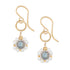 Elegant drop earrings featuring luminous labradorite, framed by round freshwater pearls and accented with refined 14K gold-fill circle details. Lightweight and designed for modern sophistication.